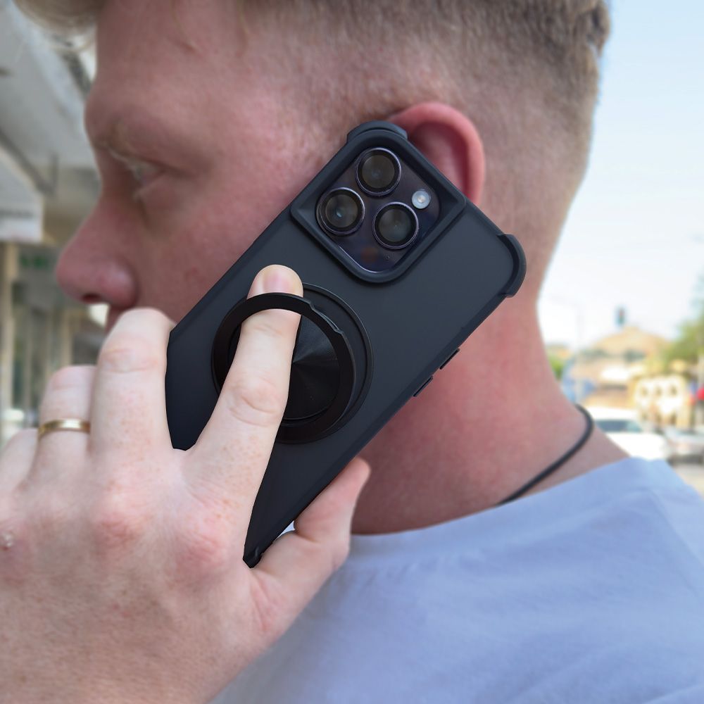 Με εργονομικό σχεδιασμό και στιβαρή πλάτη από ενισχυμένο πολυκαρβονικό υλικό, η MagMatte Ring εφαρμόζει τέλεια στη συσκευή σας, εξασφαλίζοντας ακριβή πρόσβαση σε όλα τα κουμπιά και τις θύρες. Το ενσωματωμένο μεταλλικό δαχτυλίδι στο πίσω μέρος της θήκης προσφέρει σταθερό κράτημα, ενώ λειτουργεί και ως πρακτικό stand, για hands-free προβολή video, κλήσεις ή σερφάρισμα.